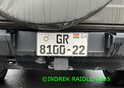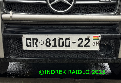 COMMENTS: normal series since 2009. Plate style since at least 2011. GR = Greater Accra. 22 = registration year 2022. This system will be likely discontinued since 2026. |